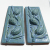ONE satin matte blue stoneware tile approximately 2 1/4 X 6 1/4 inches and about 5/8" at the top of the pinecones. They are a little more than 1/4" at the edges.